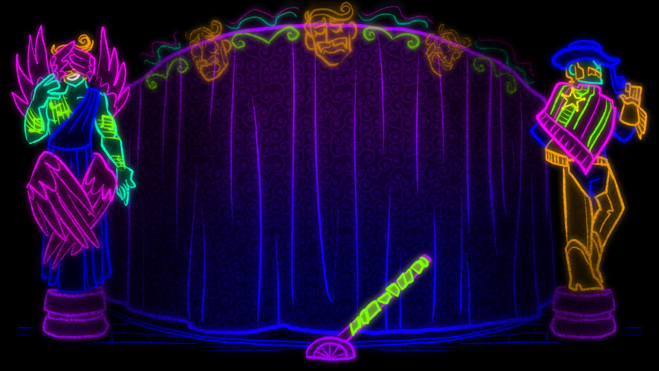 But the courtroom is wide open, if barren, and there’s not much to be uncomfortable about until the prisoner of the day is secured in place. A strange…—machine? Somehow enough of it remains in shadow to obscure any useful details—emerges from the wall to hover around the prisoner’s head, then everything but you and the wardens is swallowed by utter darkness.